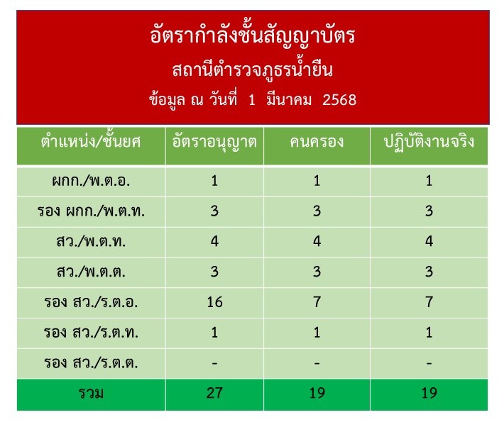 ข้อมูล ณ วันที่ 1 มีนาคม 2568